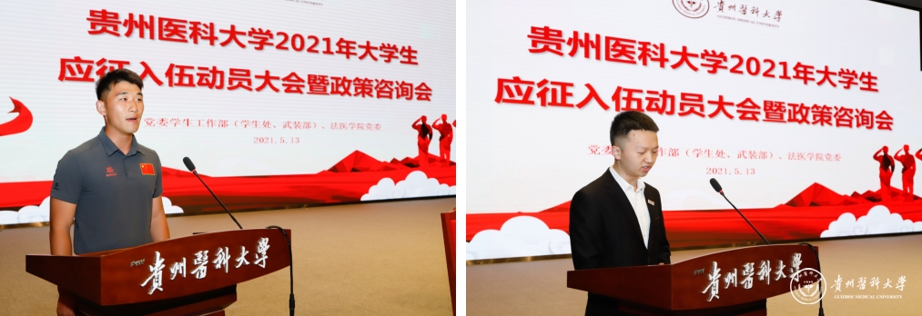 太阳成优秀退役士兵代表,运动与健康学院硕士研究生王重天、药学院本科应届毕业生李永豪作了经验分享。以自己亲身当兵经历和深切感受,从不同的角度诠释了参军入伍、爱国报国、成才奉献的精神内涵,号召同学们积极投身军旅,感受别样人生。