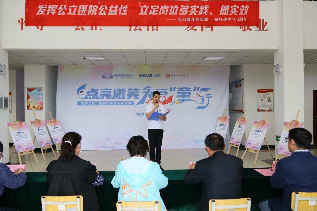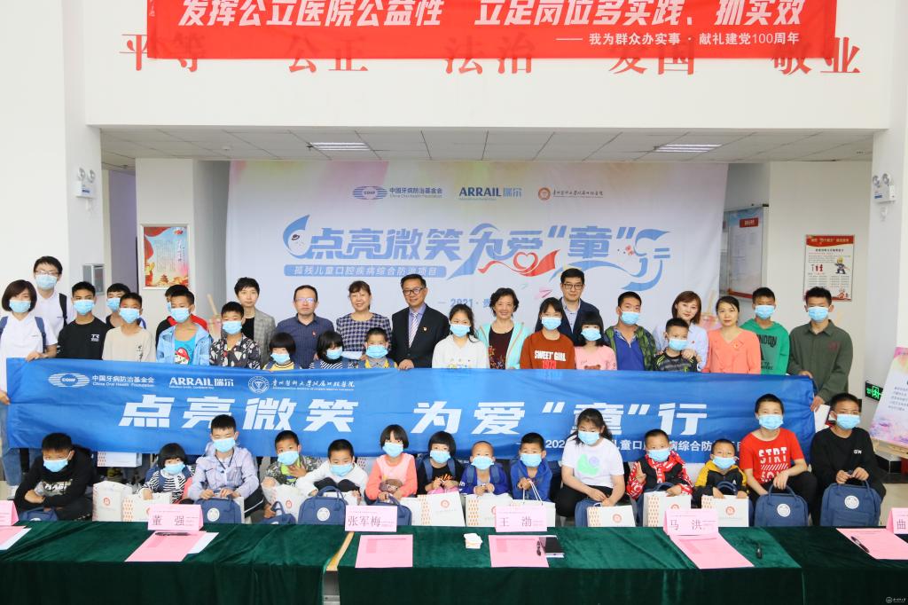 5月28日,“中国牙病防治基金会2021年孤残儿童口腔疾病综合防治项目”正式在贵州启动,太阳成集团tyc33455cc官网附属口腔医院(以下简称口腔医院)负责贵州地区该项目的具体实施。口腔医院党政领导高度重视此次活动,由班子成员带队赴贵阳市救助站完成项目启动仪式的落地和该项目第一次救助活动的具体实施,为贵阳市儿童福利院孤残儿童送去“口腔健康”及人文关怀。口腔医院党委书记张军梅和党委副书记、院长马洪出席启动仪式并致辞;中国牙病防治基金会副秘书长王渤、瑞尔集团副总裁兼首席运营官曲勃出席活动并讲话。