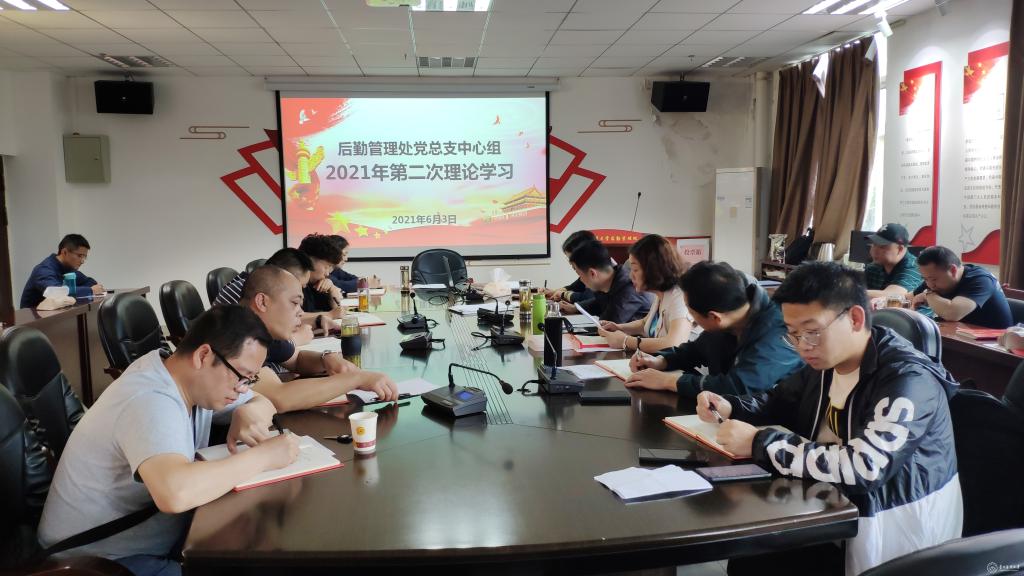 6月3日,后勤管理处党总支理论学习中心组在南校区颂雅楼五楼后勤会议室召开2021年第二次学习会议,中心组全体成员出席,全体党员参加。会议由后勤管理处党总支书记张玲玲主持。
