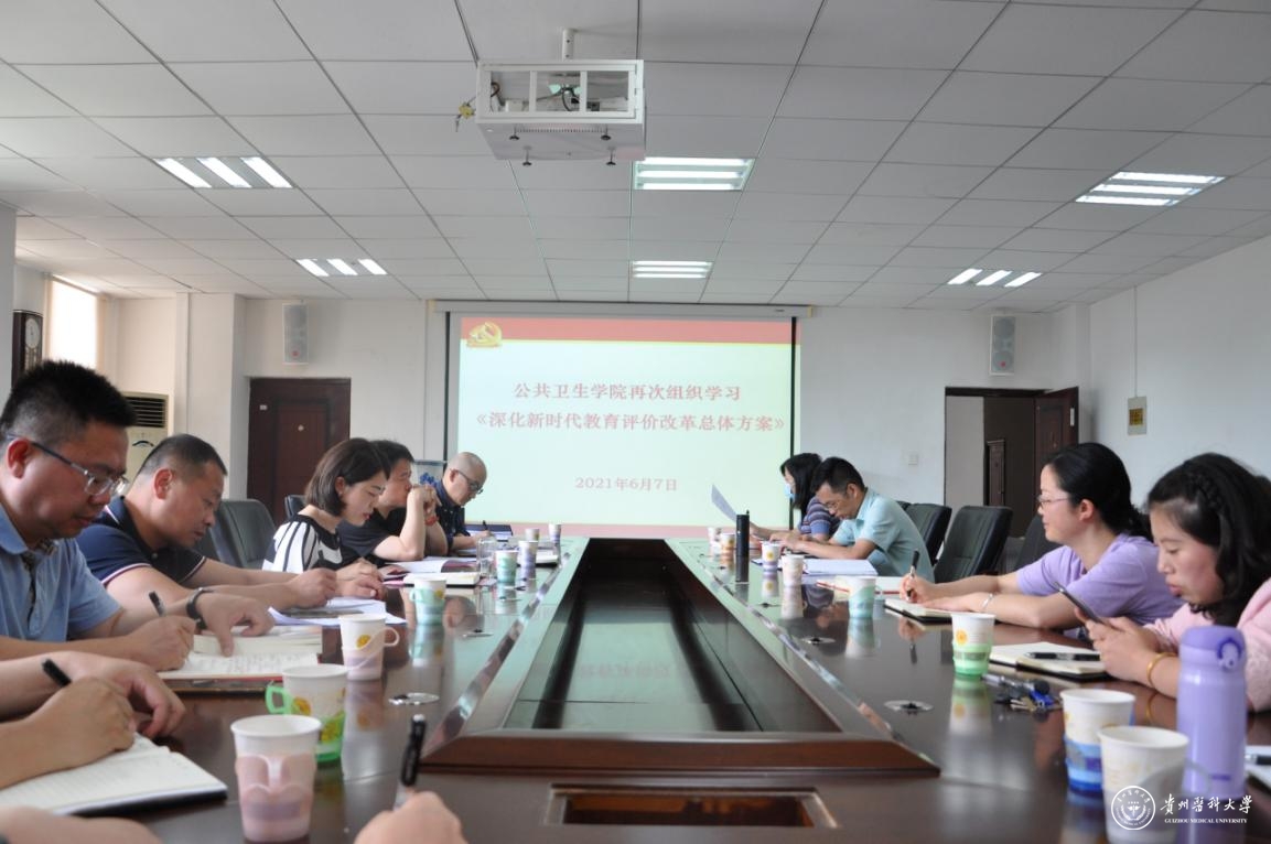 6月7日,公共卫生学院再次组织学习《深化新时代教育评价改革总体方案》。党政领导班子成员、毒性检测中心、环境与健康重点实验室负责人,各党支部书记和支委委员、各科室和学系(中心)负责人参加。会议由院党委书记郑维薇主持。