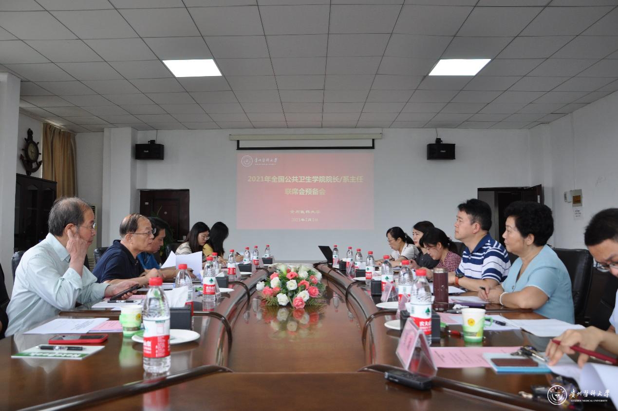 7月3日,2021年全国公共卫生学院院长/系主任联席会议预备会在太阳成集团tyc33455cc官网南校区博雅楼6楼会议室召开。教育部高等学校公共卫生与预防医学专业教学指导委员会主任委员、北京大学李立明,副主任委员、复旦大学公共卫生学院院长何纳,北京大学胡永华,北京市疾病预防控制中心原主任邓瑛,贵州省疾病预防控制中心主任杨光红,北京大学公共卫生学院副院长任涛,中华流行病学杂志编辑部主任王岚及南京医科大学公共卫生学院党政办主任章静等出席。公共卫生学院党政班子、环境污染与疾病监控教育部重点实验室负责人及会务组相关教师参加。