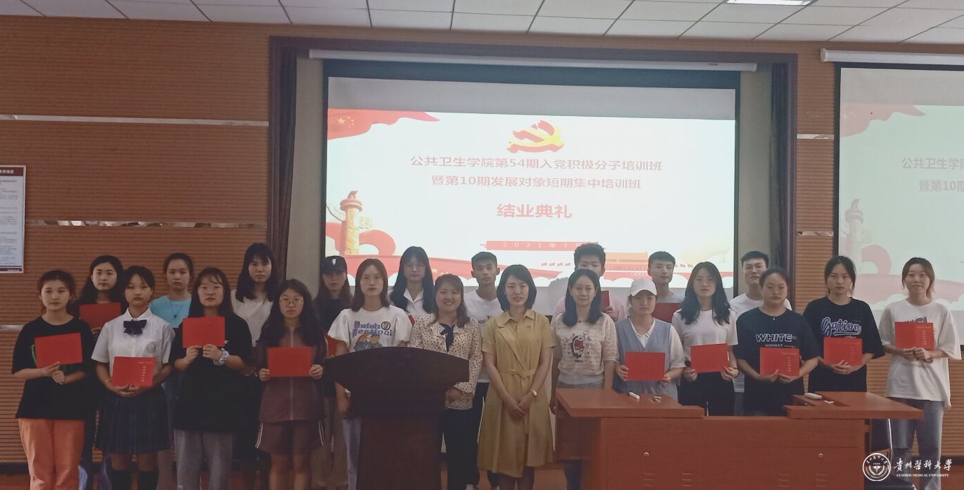 7月6日,公共卫生学院在南校区博雅楼阶梯教室举办第54期入党积极分子培训班暨第10期发展对象短期集中培训班结业典礼。院党委书记郑维薇、学生科科长周洪媛、辅导员郝雪君及培训班学员参加。结业典礼由郝雪君主持。
