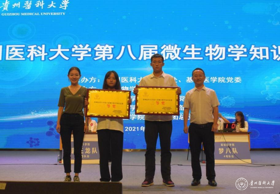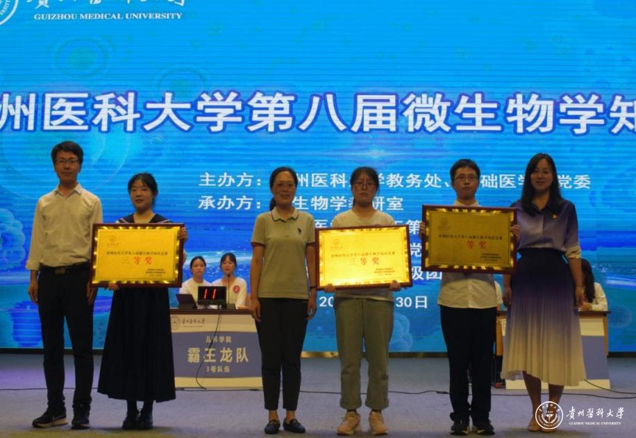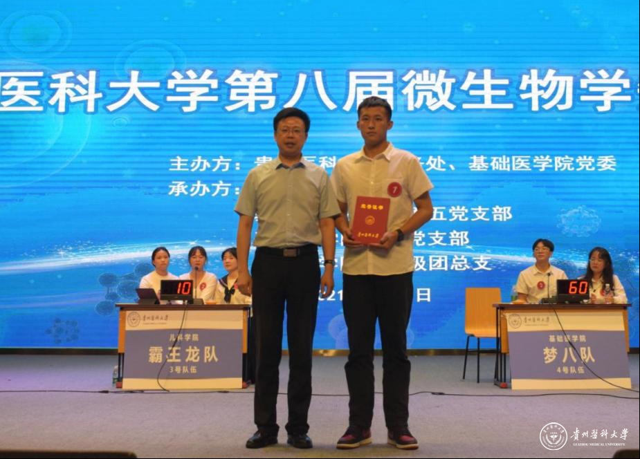 决赛包括独闯奇关、共度险关、勇闯难关三个环节。在互动环节现场师生参与答题,气氛活跃。经过选手们的激烈角逐。最终,基础医学院“高压蒸汽灭菌队”荣获团体一等奖,口腔医学院“微微一笑全都队”、基础医学院“梦八队”荣获团体二等奖,麻醉学院“麻风杆菌小分队”、儿科学院“霸王龙队”、基础医学院“微风凛凛队”荣获团体三等奖。来自于基础医学院“梦八队”的李云飞同学荣获优秀个人奖。