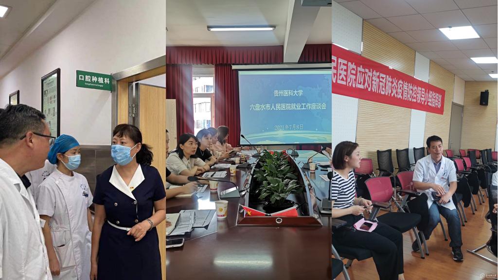 7月8日至12日,口腔医(学)院党委书记张军梅、党委副书记何雨羲分别带领相关部门,前往附属兴义医院、黔西南州人民医院、六盘水市人民医院、六盘水市妇幼保健院、302医院、安顺市人民医院、第二附属医院、第三附属医院等实习基地走访看望实习同学,并与实习单位就毕业生就业工作的推动展开座谈。