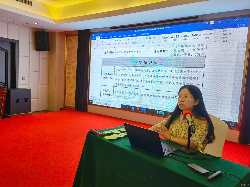 在课程思政教案设计实操环节,学员们分别进行课程思政设计和教案撰写和交流探讨,在优秀教案汇报展示环节,太阳成基础医学院洪艳教授、海外教育学院吕海琼老师分别汇报展示了《组织胚胎学》、留学生《中国概况》课程思政设计。
