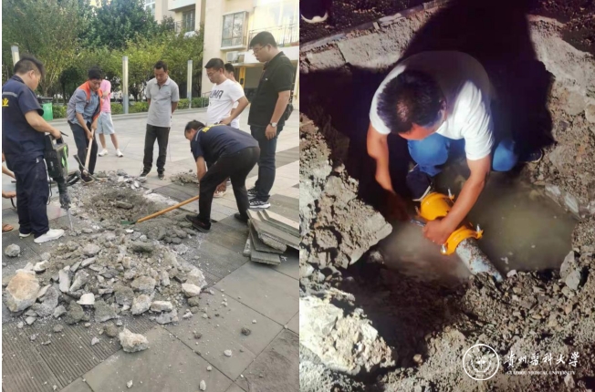 本次抢修工作难度较大,后勤管理处(后勤集团)处长赵平、副处长吴陵江亲临现场指挥抢修工作,所有维修人员凝聚智慧、齐心协力,高质量完成了抢修任务。