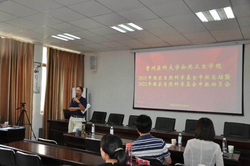 9月14日,公共卫生学院2021年国家自然科学基金申报总结暨2022年申报动员会在博雅楼2楼(公共卫生学院)学术报告厅召开,会议由学院副院长张清海主持,邀请科技处处长郭兵、副处长李一欣指导,公共卫生学院、环境污染与疾病监控教育部重点实验室的领导和全体老师参加会议。
