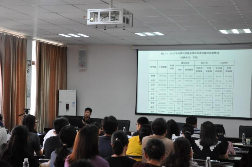 郭兵介绍了学校2022年国家自然科学基金申报工作的整体安排,鼓励符合申报条件的老师要积极参与申报,发扬创新拼搏的科研精神。