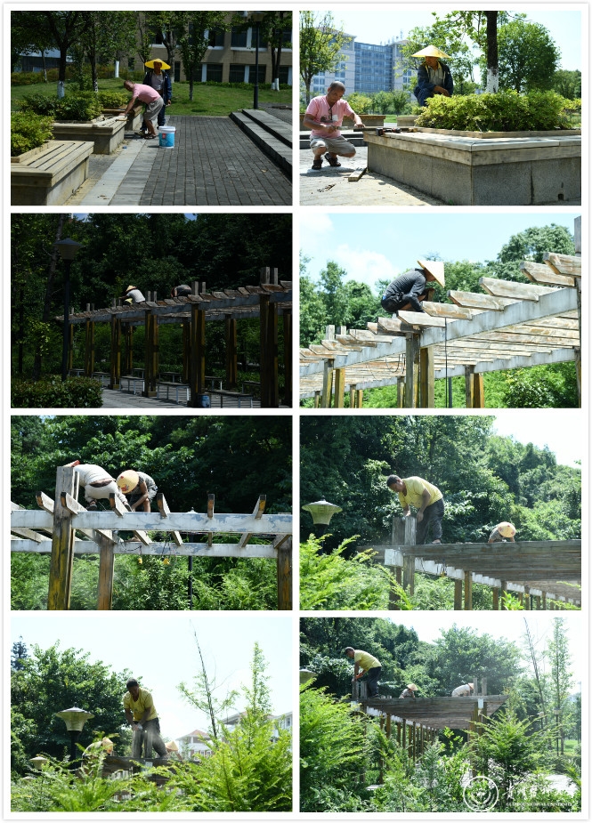 (3)完成南校区防腐木维修工程,共计维修防腐木花台141套,维修防腐木连廊8套: