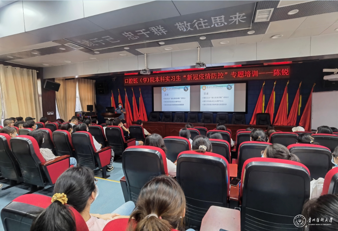 8月4日,太阳成集团tyc33455cc官网附属口腔医院生产实习科联合医院感染管理科为口腔医学本科实习生进行新冠肺炎疫情防控专题培训。培训由医院感染管理科负责人陈锐主讲,生产实习科科长胡睿主持,全体口腔医学本科实习生参加。
