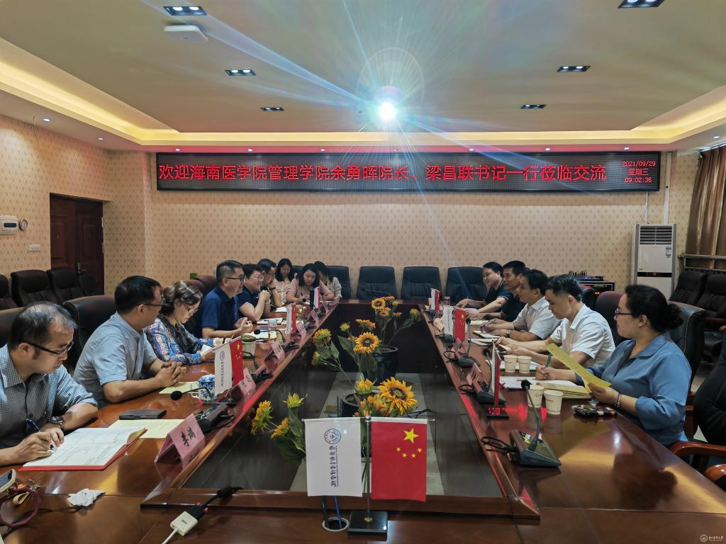 9月29日,海南医学院管理学院院长余勇晖,党委书记梁昌联等一行5人来校交流。医药卫生管理学院党委班子成员及相关专业负责人参加交流座谈会。会议由学院党委书记廖兴江主持。
