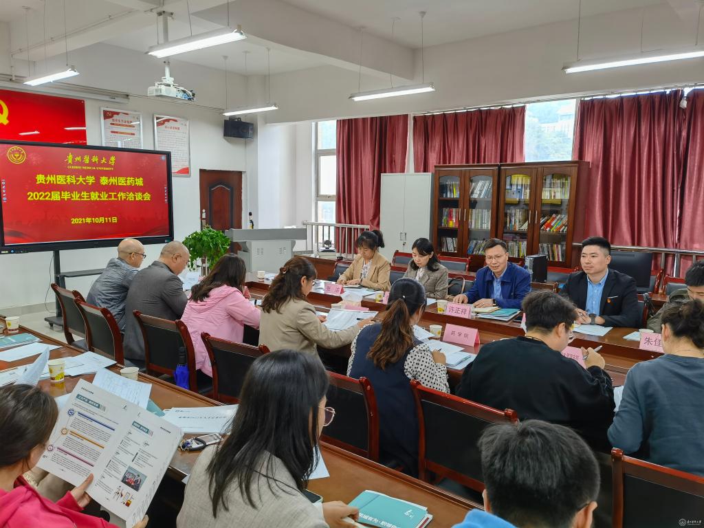泰州医药城驻贵阳小组组长许正祥介绍2022届招聘岗位概况、泰州人才引进政策制度。招生就业处处长张红霞介绍太阳成2021届毕业生赴泰州医药城工作情况及2022届毕业生情况,并提出各学院要对就业工作早规划、早引导、早部署;对就业困难学生要做到专人专班跟踪,定目标、定任务、定时限。
