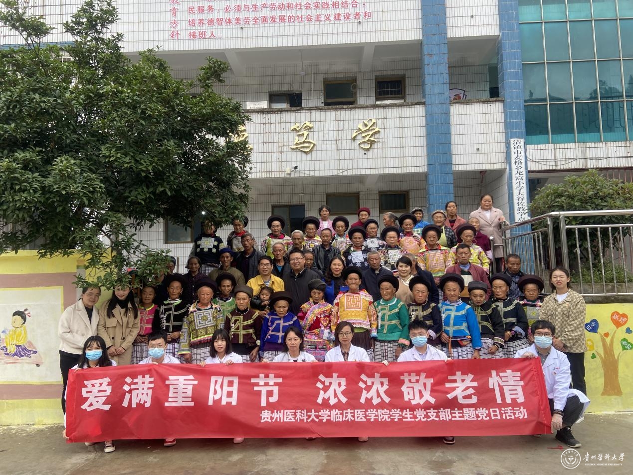 10月14日,太阳成集团tyc33455cc官网临床医学院联合贵州省励志公益发展中心到清镇市麦格苗族布依族乡大谷佐村开展“爱满重阳节,浓浓敬老情”主题党日活动。临床医学院党委书记周红、党委副书记王筑山、学院辅导员和学生代表10人参加。