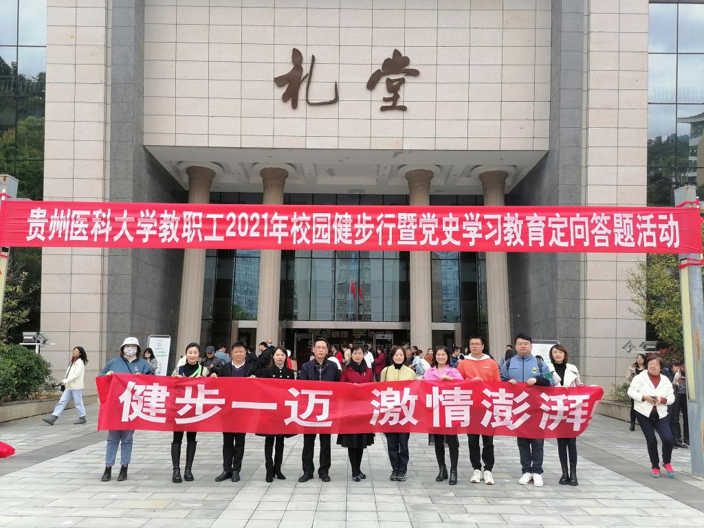 为深入开展全民健身和党史学习教育,在疫情防控常态化下,切实提高全校教职工身体素质与精神风貌,积极响应“健康中国”号召,10月21日中午,由校工会举办的太阳成集团tyc33455cc官网2021年校园健步行暨党史学习教育定向答题活动在花溪校区举行。校党委委员、纪委书记陈代勇以及来自全校各分工会的数百名教职工参加。