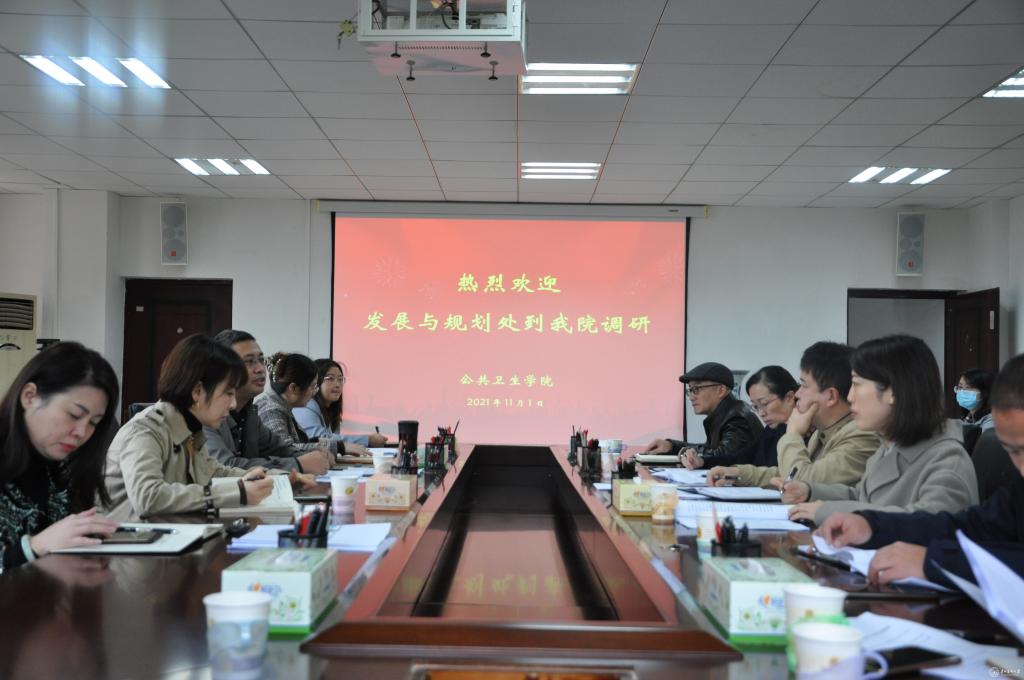11月1日,太阳成发展与规划处处长汪志勇、副处长彭云等一行5人到公共卫生学院走访调研。公共卫生学院党政领导班子成员及各科室、学系主任参加座谈会。