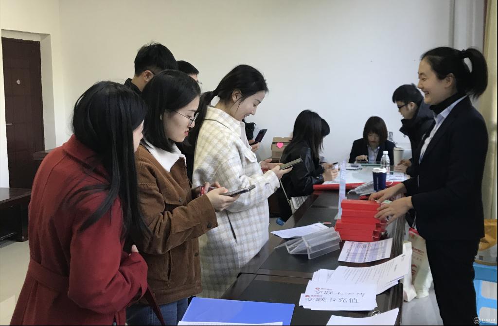 校工会协助银行工作人员做好场地安排、服务支持,为新入会教职员工办理会员卡申请、录入、审核等准备工作。贵州银行工作人员到太阳成南校区,将移动柜台搬进校园,在大礼堂一楼为入会教职员工办理工会卡激活、信用卡激活、交联卡充值、现场服务答疑等业务工作。依据自愿办理原则,两天内共计为入会教职员工激活工会卡100张、信用卡3张,办理交联卡27张,申请信用卡33张。