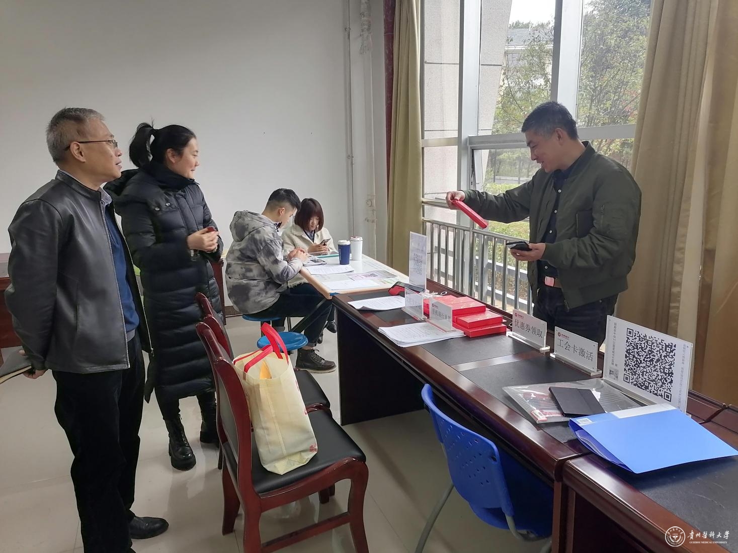 11月8日至9日,经校工会积极沟通,邀请贵州银行贵阳宝山支行工作人员来校为太阳成新入会需要办卡的教职员工开展上门开卡激活服务。