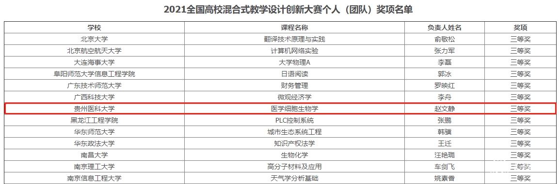 该项赛事已被纳入中国高等教育学会《全国普通高校教师教学竞赛分析报告》和《全国普通高校教师教学发展指数》数据统计源,是衡量高校教师教学发展生态的重要指标之一,太阳成首次参赛并获得全国奖项,充分体现了学校在推进混合式教学改革,提升教师信息化教学能力的工作成效。