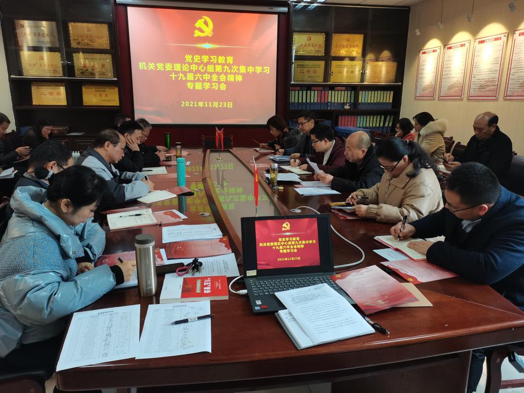 机关党委召开党史学习教育机关党委理论中心组第九次集中学习暨党的十九届六中全会精神专题学习会