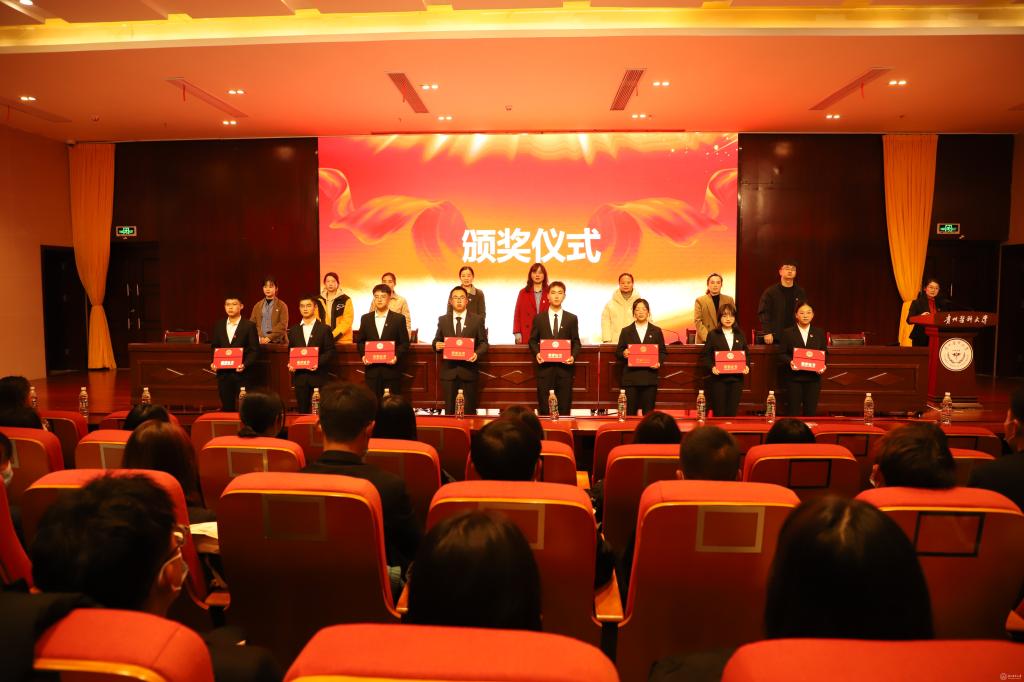 参会领导、老师为优秀学生工作者颁发证书,为学生干部颁发聘书。最后全体成员重温入团誓词,奏唱共青团团歌。