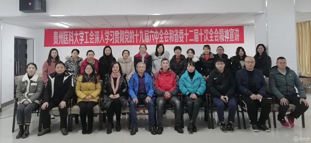 1月6日,学校工会系统在花溪校区大礼堂四楼会议室举行深入学习贯彻党的十九届六中全会精神和省委十二届十次全会精神宣讲暨2021年度工作总结会。校工会主席钟良、各分工会主席、直属工会小组负责人以及校工会全体人员参加。会议由校工会副主席张亮主持。