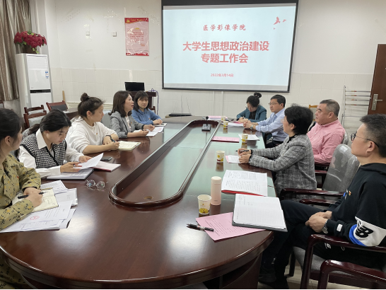 3月14日,医学影像学院大学生思想政治建设专题工作会在北校区基础二号楼8楼会议室召开。学院党委书记李雪梅、领导班子成员、相关职能部门以及全体辅导员参加。会议由学院党委副书记姚琨主持。