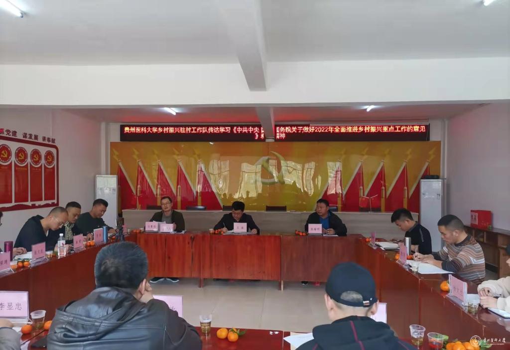 会议传达学习《中共中央国务院关于做好2022年全面推进乡村振兴重点工作的意见》和《国务院关于支持贵州在新时代西部大开发上闯新路的意见》。