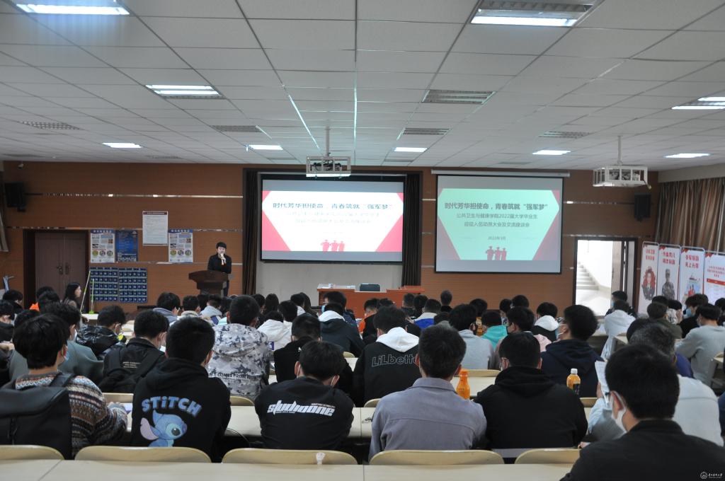 3月23日,公共卫生与健康学院组织召开“时代芳华担使命•青春筑就‘强军梦’”为主题的2022届大学毕业生应征入伍动员会。党委学生工作部(武装部)部长王韬、国防教育科吕韬、郭彦磊、宋毓豪,学院党委书记郑维薇、党委副书记何江出席,学生科全体辅导员、班主任及学院2022届适龄男性毕业生参加。