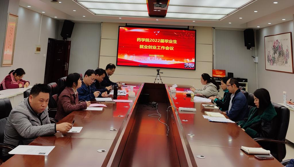包欢欢宣读《药学院2022届毕业生就业创业工作方案》《药学院2022届毕业生就业三级联动工作方案》《药学院2022届困难高校毕业生就业创业帮扶工作方案》,并表示积极发挥三级联动和一对一帮扶的能动性,做到精准帮扶、精确推送,将工作落实到每一位学生;2022届本科生毕业班辅导员余佳对目前本科的就业情况进行介绍,并讲解毕业生就业创业相关台账的填报要求及安排。