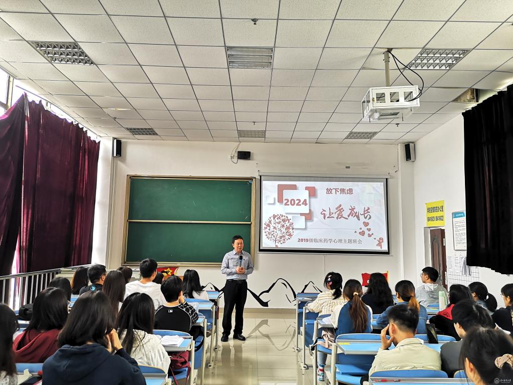 4月26日,校党委副书记汤磊参加2019级临床药学班“放下焦虑,让爱成长”心理主题班会,班会从考研和就业两方面剖析了同学们目前的心理状况,通过国内外行业前景分析,职业发展规划以及医院现状方面和同学们进行交流。班会院团委副书记、辅导员徐冉主持。
