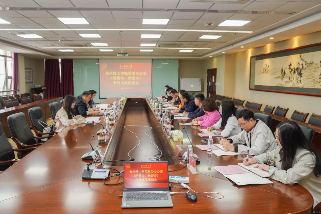 座谈会上,孙凯系统介绍了贵州理工学院巡察机构建设、人员配备及巡察工作开展情况,着重分享了学校在开展保密工作尤其是接受省国家保密局进驻式检查工作的情况及经验,在强化保密人员培训、加大涉密人员管理及规范保密制度建设等方面也分享了好的经验做法。