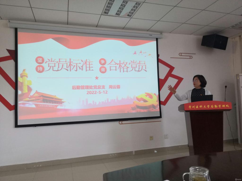 5月12日,后勤管理处党总支副书记周云蓉在南校区颂雅楼五楼后勤会议室以“坚持党员标准、争做合格党员”为题,为后勤党总支全体党员上了一堂廉政党课。