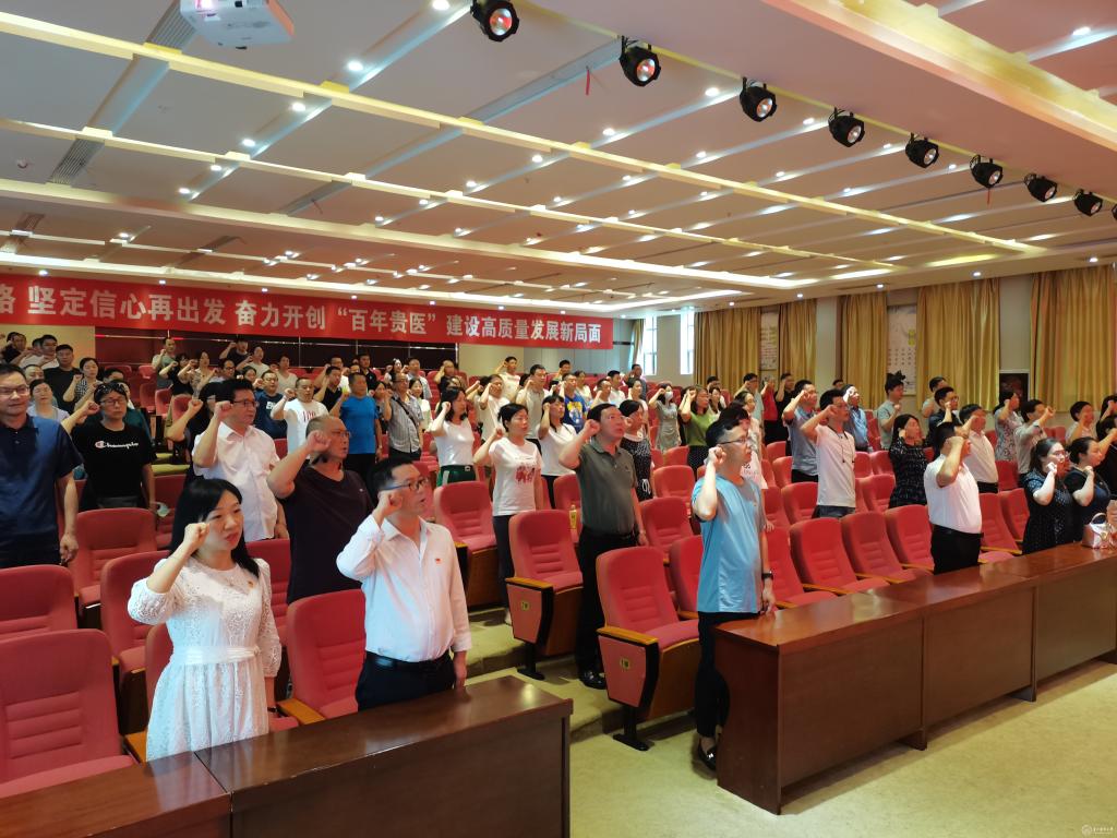 邓舟带领全体党员以时间为主线,回顾中共一大到中共十九大的简要历史,广大党员干部驻足观看,认真聆听,深刻体悟。邓舟强调,作为一名共产党员要不断锤炼党性修养,在坚定信念上当先锋、做表率。机关党员要以榜样为镜,在服务群众上当先锋、做表率,继续秉持恪尽职守、踏实肯干的优良作风,以更加饱满的热情、更加昂扬的斗志投入到党建事业中,为谱写贵医高质量发展新篇章贡献力量,以优异成绩迎接党的二十大胜利召开。