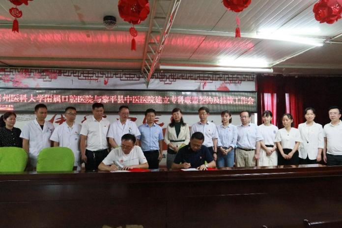 会上,双方正式签署了专科联盟及对口帮扶合作协议,授牌黎平县中医医院为口腔医院专科联盟单位,随即举行了专科联盟揭牌仪式。