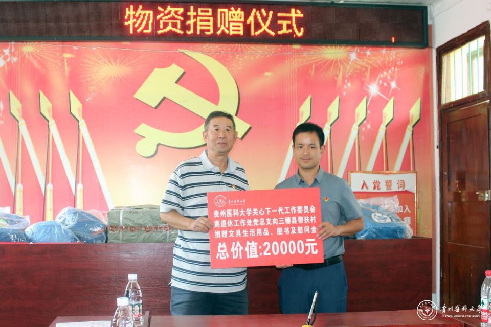 潘贵书代表校关工委向三穗县八弓镇留守儿童、孤残及困难老人捐赠文体用品、图书、生活物资共计2万元。