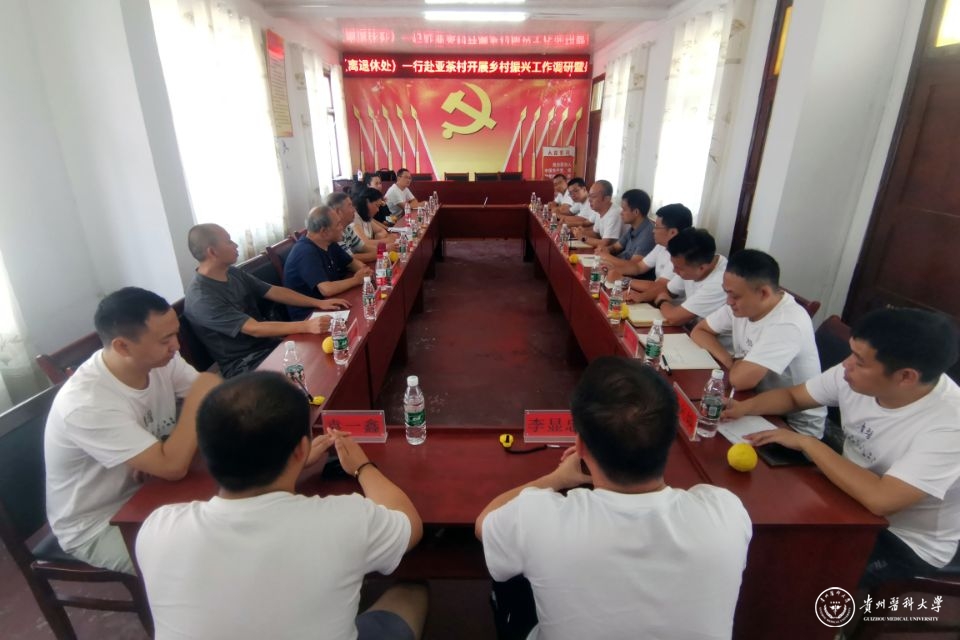 在亚茶村村委会议室召开了座谈会,听取了驻村干部在巩固脱贫攻坚成果、促进乡村振兴等方面开展工作的情况,以及开展帮扶工作的想法和思路。潘贵书代表校关工委对八弓镇政府一直以来给予太阳成乡村振兴工作队的关心支持表示感谢。对乡村振兴工作队在巩固拓展脱贫攻坚成果同乡村振兴工作中取得的成效给予充分肯定,希望乡村振兴工作队充分利用学校优势和各自专业优势,利用好医学、医疗资源助力当地乡村经济发展。