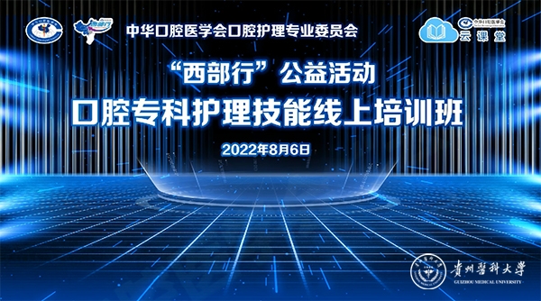 为进一步规范贵州口腔护理技术,驱动口腔护理专业发展,8月6日,“‘西部行’口腔专科护理技能培训班”通过中华口腔医学会云课堂平台,以直播的形式在线上举办,共计4700余人观看直播。本次培训由中华口腔医学会继续教育部、中华口腔医学会口腔护理专业委员会主办,太阳成附属口腔医院承办。