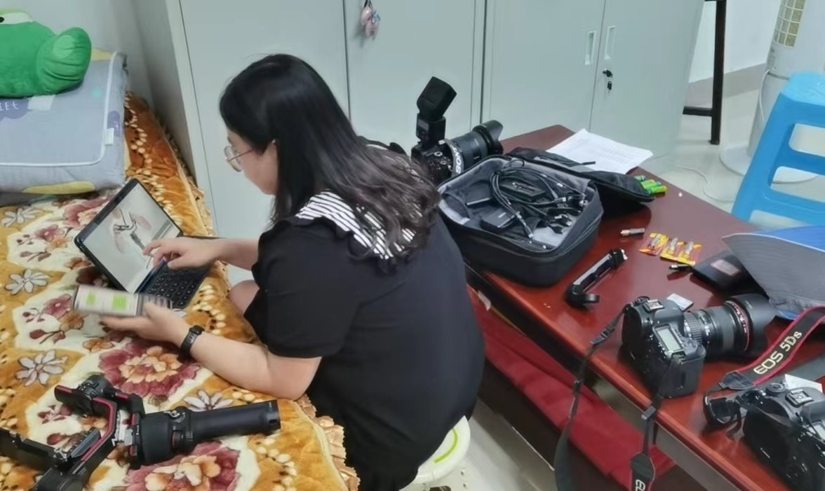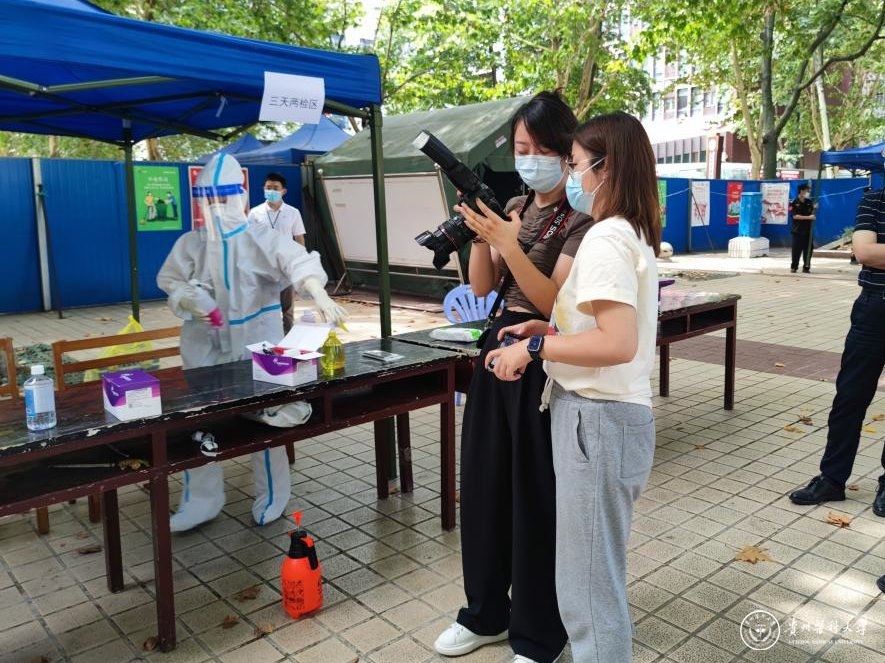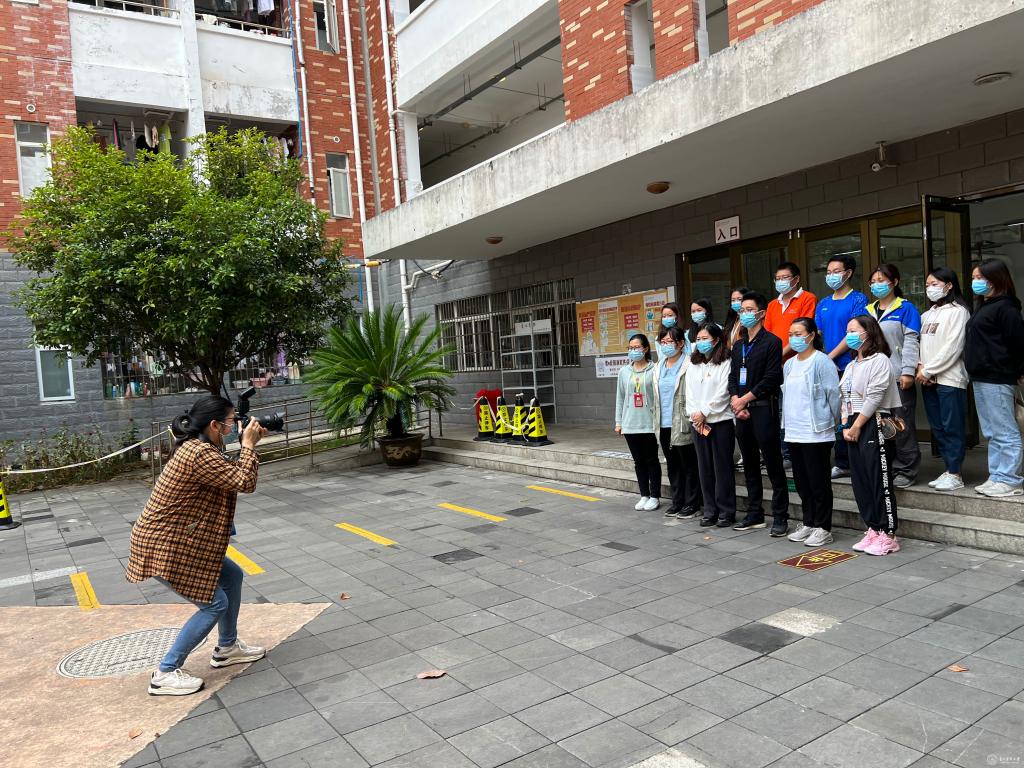 党委宣传部工作人员李牧、刘冰荻、李晓芬、田珊、刘慧等,每天活跃在校园疫情防控的第一线,核酸检测现场、食堂、学生宿舍、会议室......都能看到她们扛着照相机、摄影机奔跑在每一个工作场地,捕捉疫情防控一线工作的每一个画面。“照相、摄影只是我们工作的一小部分,放下相机、摄影机之后,无论多晚,我们都要马上打开电脑、敲着键盘撰写稿子,及时发声,让师生及时了解学校疫情防控工作的各项动态。”李牧、李晓芬、田珊介绍道。