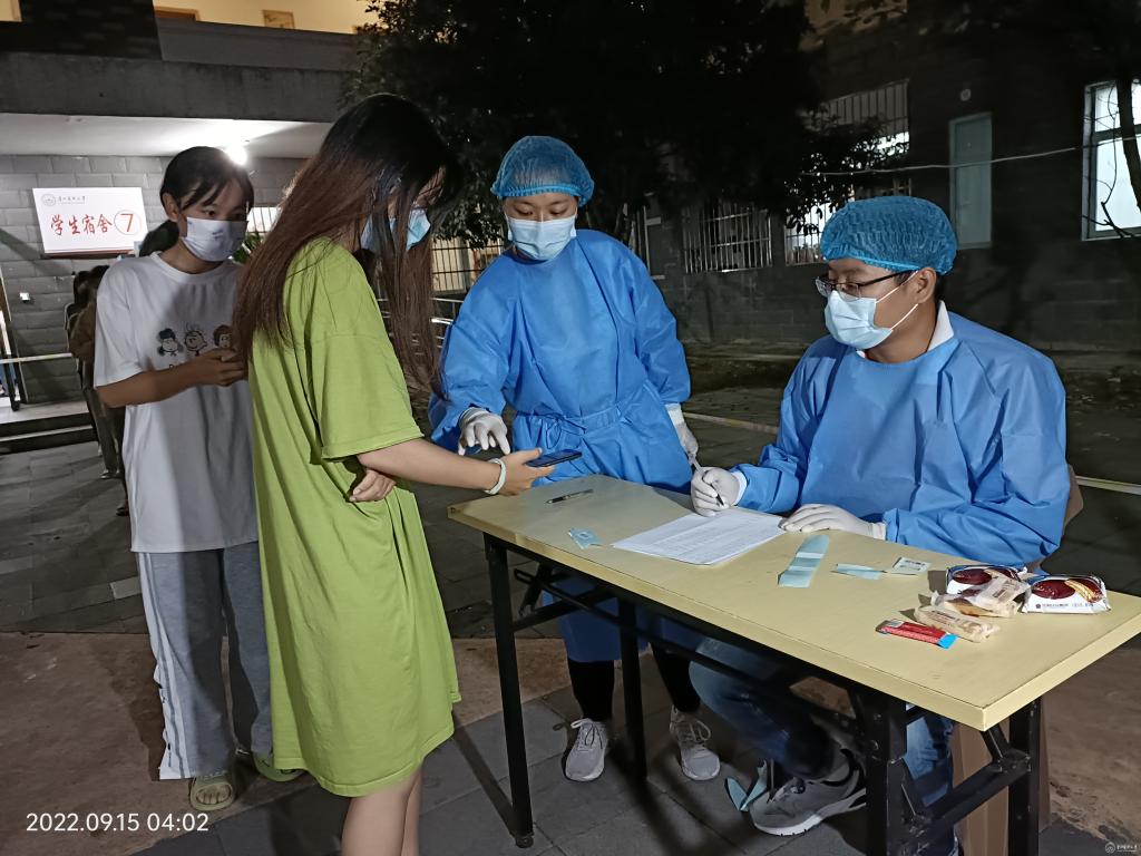 党委统战部工作人员秦雅倩、保莎作为学校核酸检测信息员,协助做好全校师生的核酸检测信息采集工作,积极做好学生宿舍楼的上门排查、核酸检测及抗原检测,确保校园内环境安全。同时,统战部全体成员积极号召学校统一战线各界人士积极投身抗疫行动中,并及时宣传报道其抗疫实况。