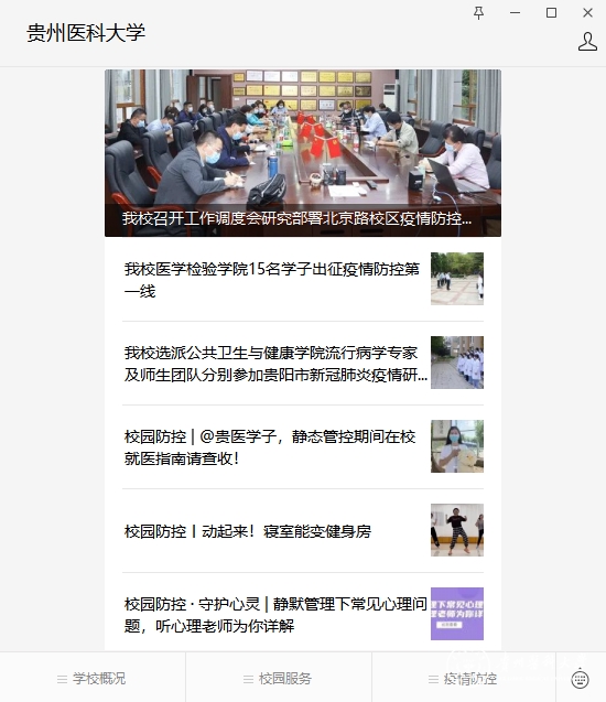 联动新闻媒体广泛开展学校疫情防控新闻报道,聚焦展现贵医教职医护员工生不惧艰难、冲锋在前的责任担当及积极乐观、充满信心的精神风貌。学校策划的宣传内容,被“学习强国”学习平台、天眼新闻、动静新闻、中国教育在线积极引用报道,相关举措被省教育厅贵州教育发布、贵州高校思政等官方微信公众号宣传引用。其中,太阳成在动静新闻app首页发布的《同心战疫时丨做一个心里裹着光的人!女大学生寝室组队弹唱,为战役加油!》浏览量为25万人次,官微视频号《师者如光,微光如炬》浏览量为4.5万人次,获得了较好的社会反响。9月15日,《贵州新闻联播》报道了太阳成在疫情防控、线上教学等方面的经验做法。
