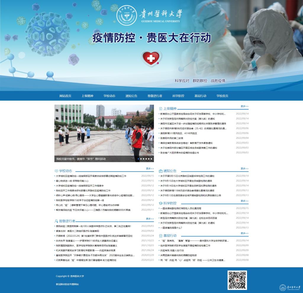 党委宣传部全体成员不分昼夜始终坚守疫情防控宣传工作岗位,充分利用官网、疫情防控专题网、官微、视频号、横幅、海报、液晶显示屏、LED屏、宣传栏、广播等向广大师生公布近期新冠肺炎疫情情况和学校防控工作动态,传达疫情防控相关文件、通知和工作安排,普及新冠肺炎疫情防控知识,宣传报道校园疫情防控工作的各项举措和贵医人的担当作为,做好正面舆论氛围营造和思想引导。截至9月15日,学校共发布疫情防控新闻、视频等581余条,其中学校官方平台报道290条,校内其他平台报道219条,校外媒体报道82条,各平台累计新闻浏览量约170万人次。