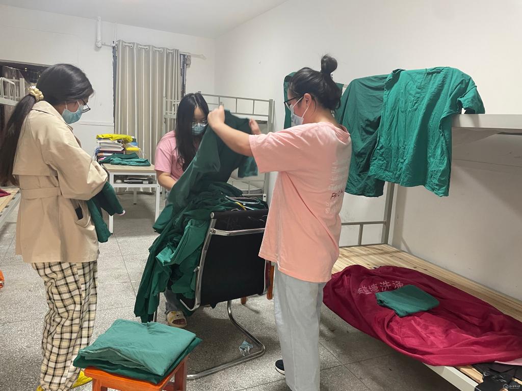 每天早上,小组成员要对前一天消杀衣服进行清点、整理,并由宿舍管理员对相应区域进行消杀;下午,小组成员要对当天衣物进行消毒、清洗、晾晒,确保疫情防控工作人员衣物的正常供应。正是他们的默默奉献,与院里其他后勤保障人员打好配合、坚守后方,才能使一线工作人员放心、安心。