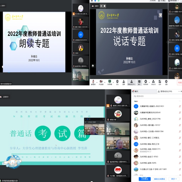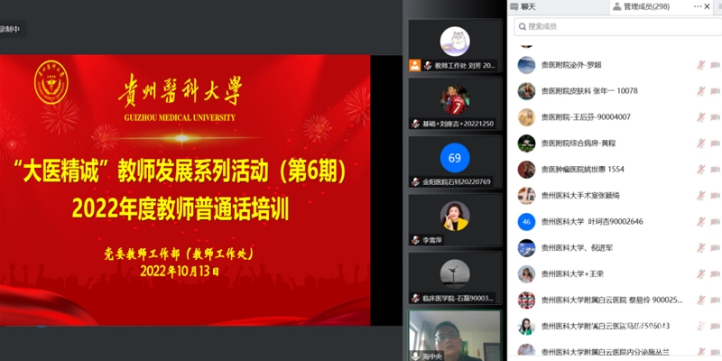 10月13日,党委教师工作部(教师工作处)举办了“大医精诚”教师发展系列活动(第6期)——2022年度普通话培训。学校及附属医院300余名教师通过腾讯会议参加。