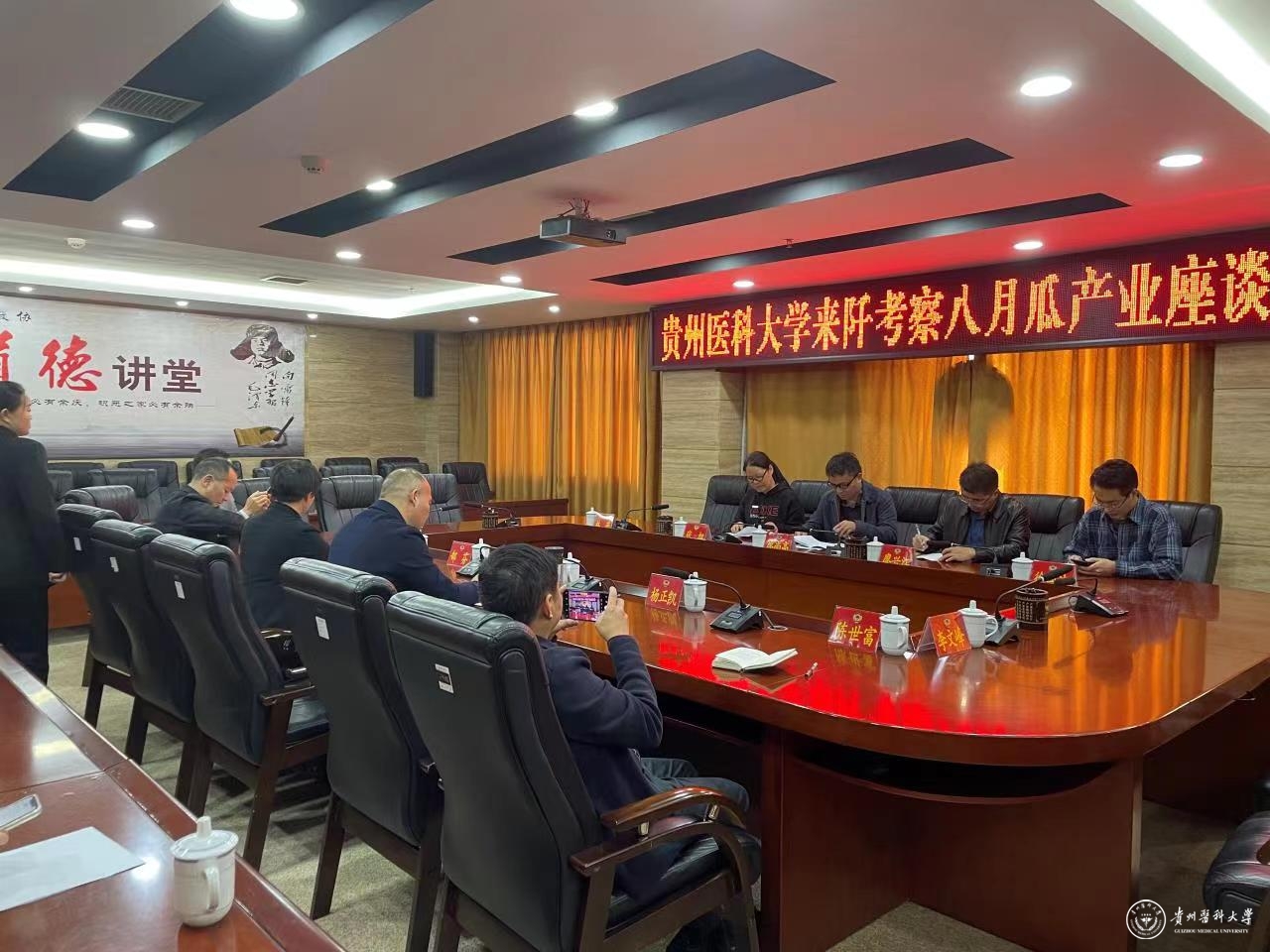 考察组一行实地参观了解该地八月瓜种植基地、加工厂、产品展示大厅后,在石阡县政协会议室与当地有关负责人座谈交流。