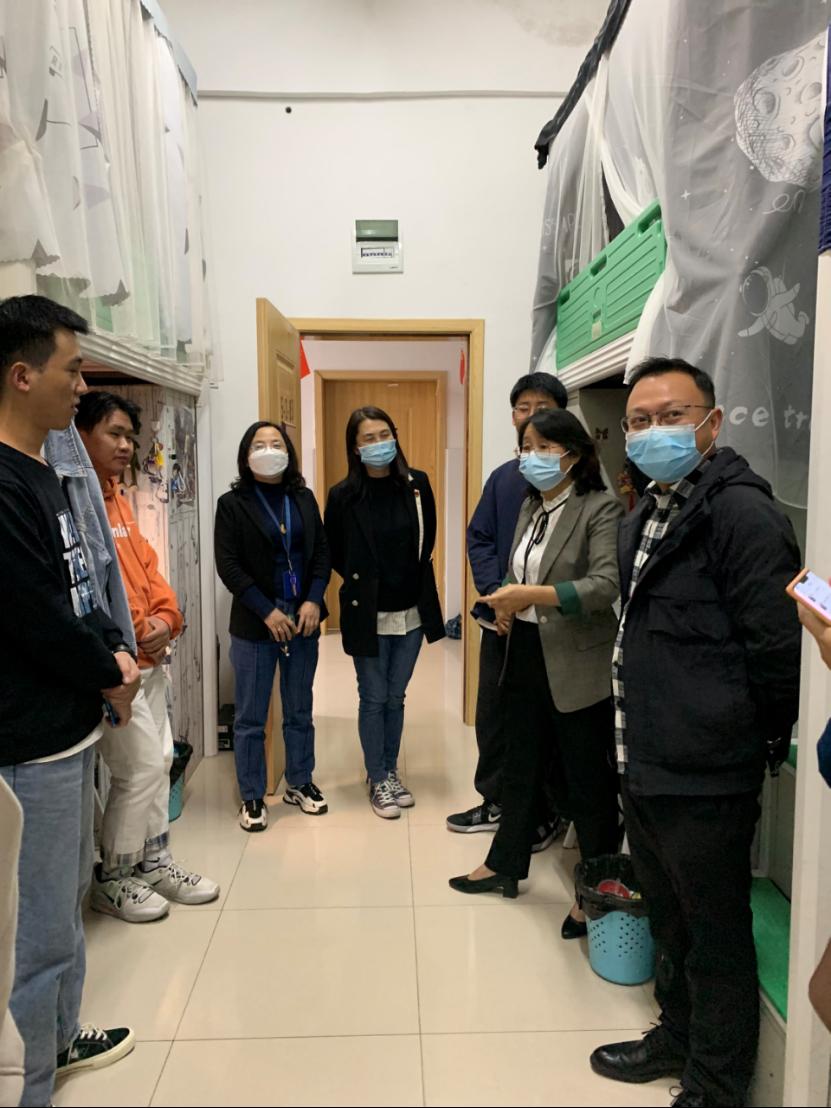 蒋红梅深入学生党支部,听取了辅导员兼学生党支部书记黎文清工作汇报,了解学生党支部的工作开展情况,对学生党支部标准化规范化建设进行指导,特别询问了疫情防控期间辅导员的工作和生活情况,对辅导员的辛勤工作给予肯定。蒋红梅还走进学生寝室,与学生谈心,了解学生在思想、心理、生活、就业等方面存在的问题,情真意切交流、实实在在关心,教育指导学生学会做人、学会做事、学会学习、学会发展。