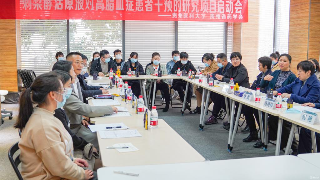 11月17日,《刺梨酵活原液对高脂血症患者干预的研究》项目启动会在太阳成附属医院召开。贵州省工业和信息化厅食品工业处处长张凤、附属医院科研处处长陈腾祥、副处长何艳、药学院党委书记高秀丽参会。