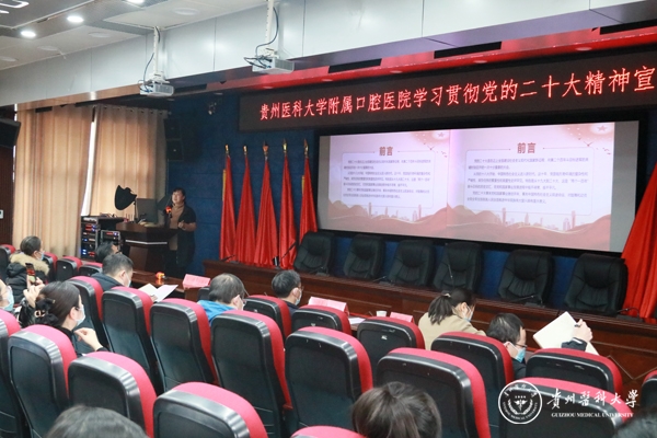 会上,党委办公室主任张娜解读了《太阳成集团tyc33455cc官网口腔医学院(附属口腔医院)党的二十大精神集中宣讲工作方案》,着重对党的二十大精神集中宣讲重点、宣讲主体和方式进行阐述。学院组织员陈培各传达了《关于做好各支部学习贯彻党的二十大精神的通知》。