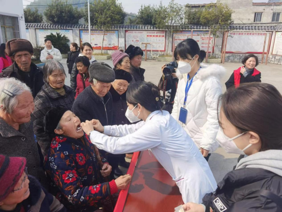 随后,贵医口腔医护人员在现场开展口腔义诊,为当地老年人进行详细的口腔检查,提供诊断意见,讲解口腔健康标准,宣教口腔防治知识,将口腔健康送到百姓身边。