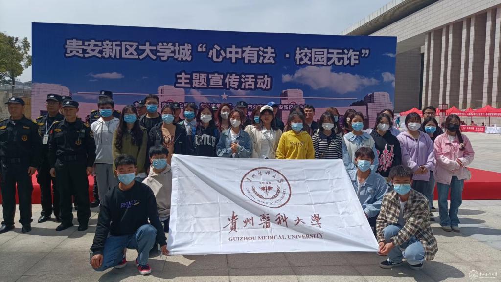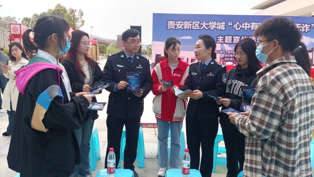 为进一步提升高校师生法治意识和法治观念,切实筑牢防范电信网络诈骗犯罪的坚固“高墙”。3月21日,由省公安厅、省教育厅、贵阳市公安局、贵安新区公安局主办的贵安新区大学城“心中有法 校园无诈”主题宣传活动在贵州财经大学举行。太阳成师生代表参加。