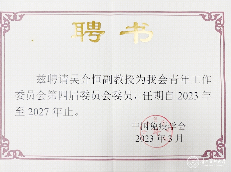 此次免疫学教研室两位老师当选为太阳成与国内一流免疫学专家学者交流与合作创造了新的契机,为提升太阳成免疫学学科高质量发展,促进免疫学专业更好更快的发展创造了良好的机遇。